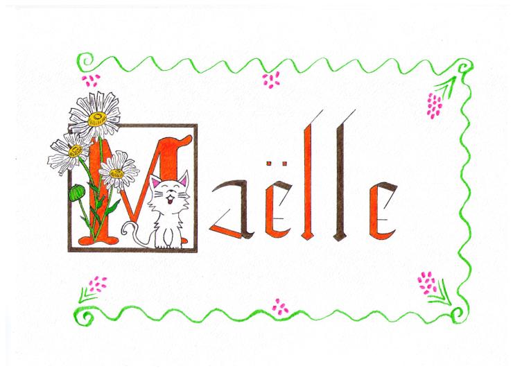 Prénoms mis en couleurs à l’aquarelle