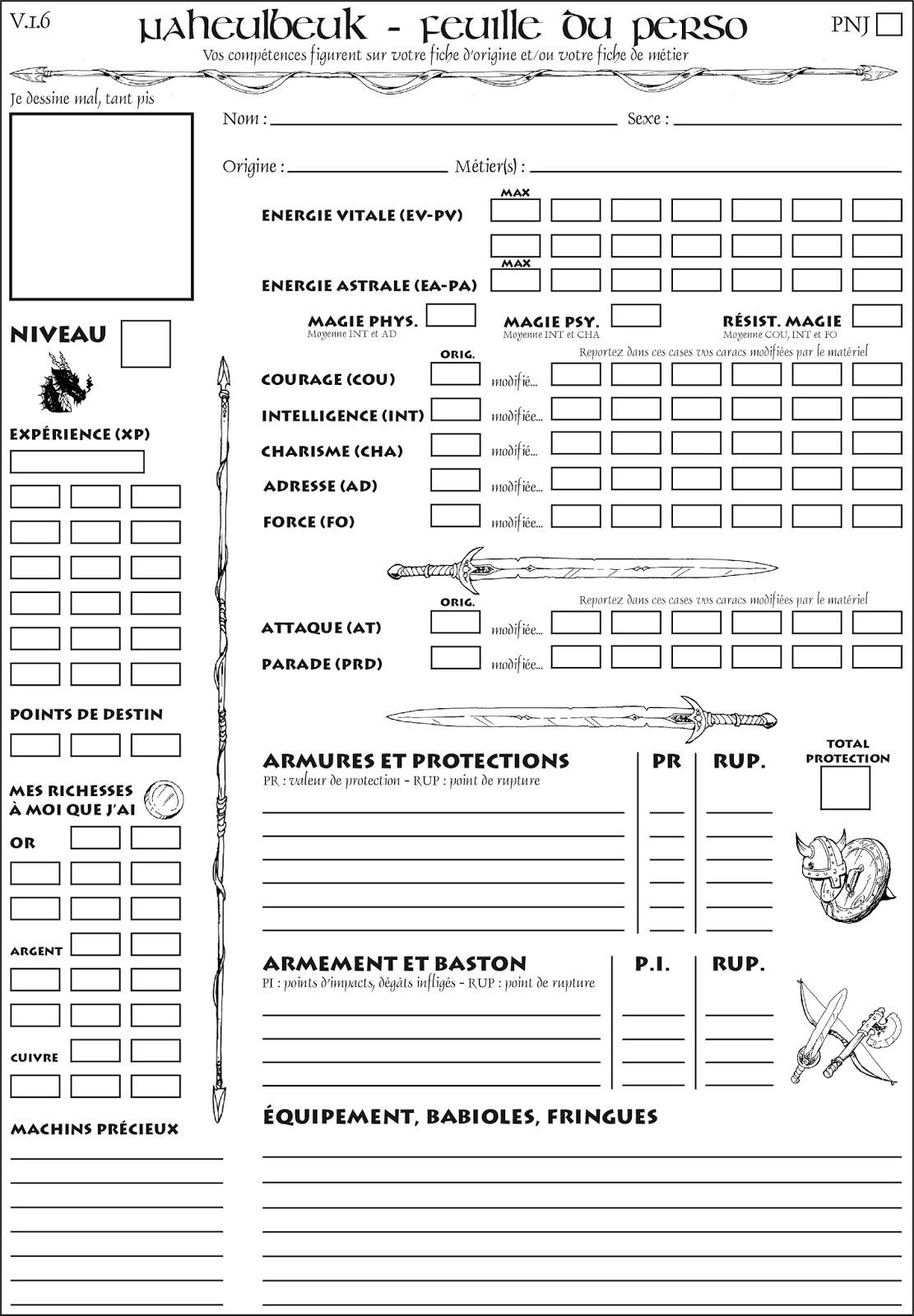 Les fiches de personnages